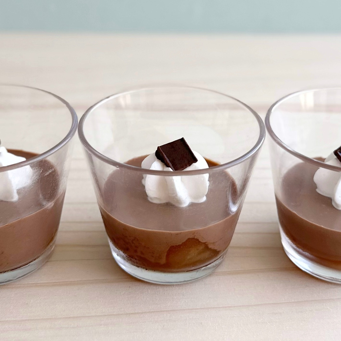 当店で定番人気となっているチョコプリンですが、今秋は洋梨のコンポートをプラスしました。洋梨の風味とチョコレートのほろ苦さが秋の深まりを感じさせてくれる、ちょっぴり大人な味わいのスイーツです。(アレルギー:乳、ゼラチン)