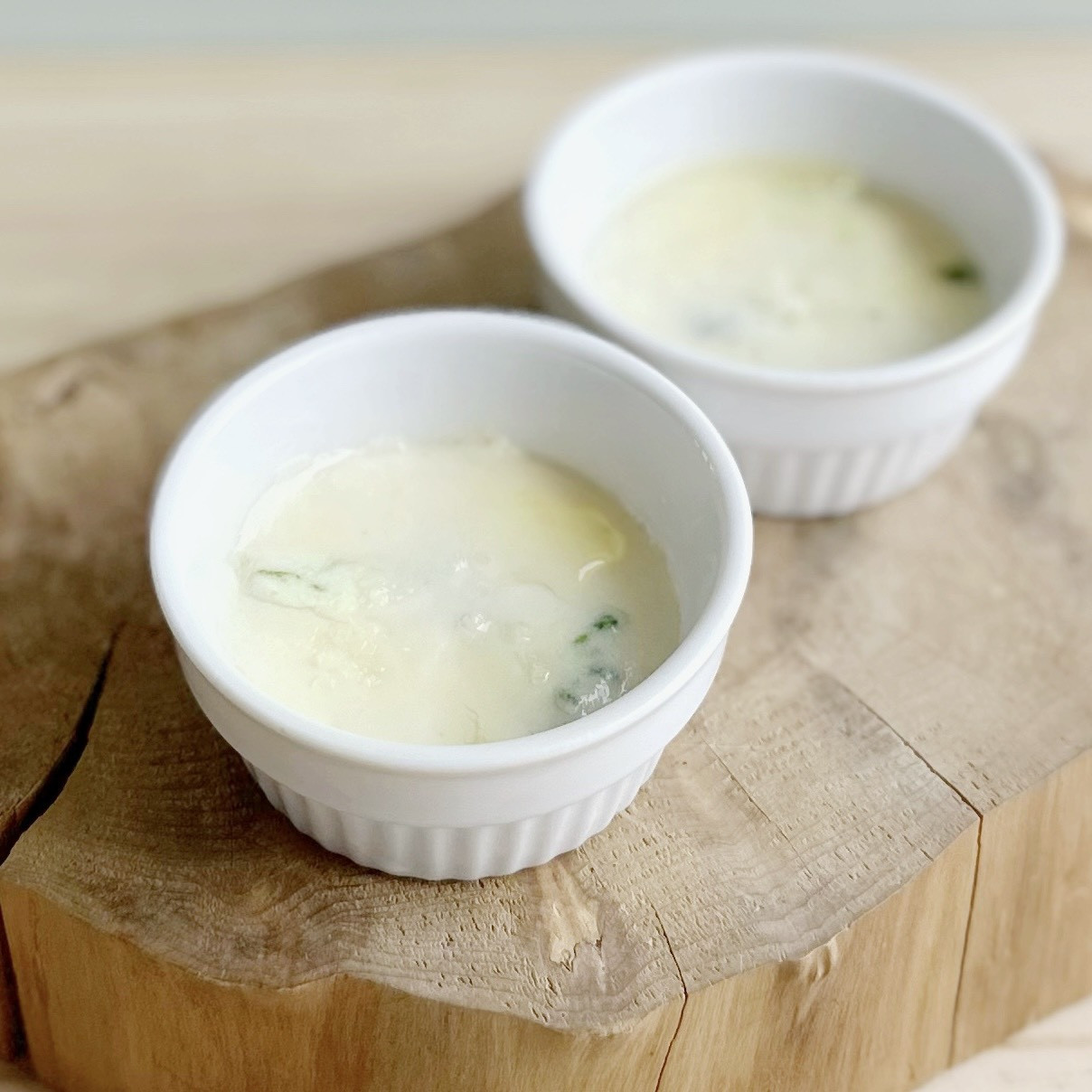 じゃが芋の自然なとろみと新玉ねぎのやさしい甘みを生かした、なめらかなムースです。 (アレルギー:乳、小麦、大豆)