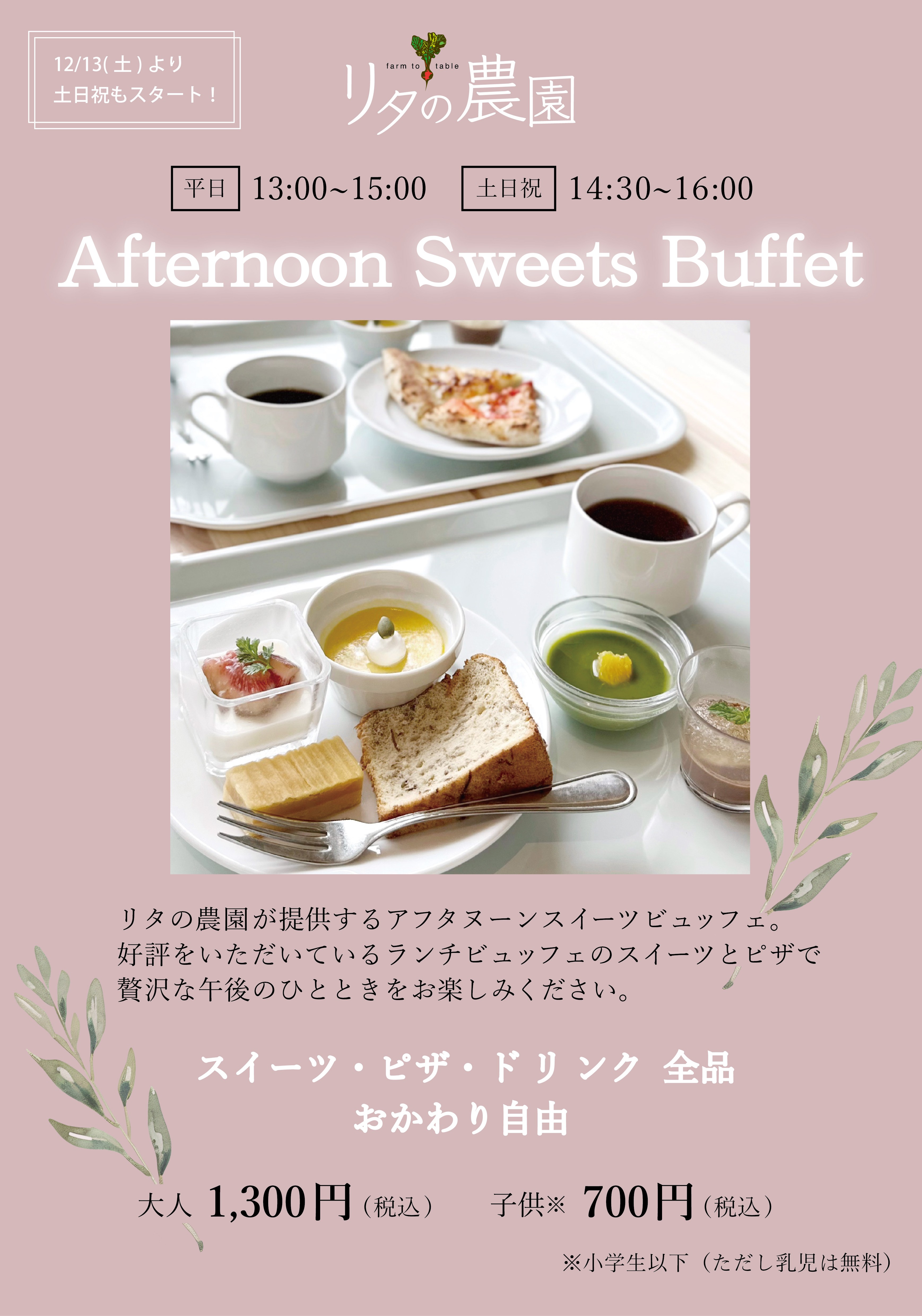 土日祝もスタート! アフタヌーンスイーツビュッフェのご案内